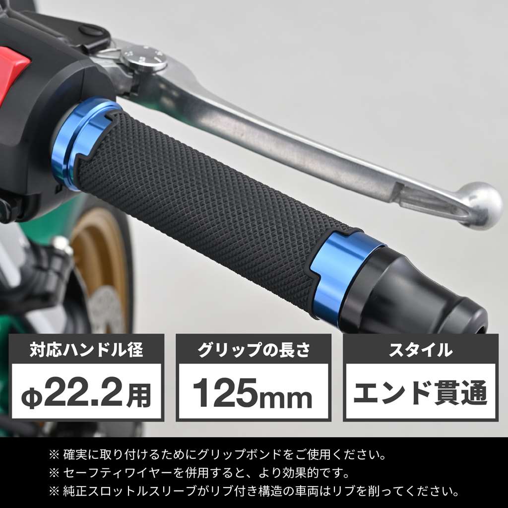 グリッピーグリップ ハンドル径φ22.2用 125mm エンド貫通 アルミリング GG-D-AL-BASE ブルー DAYTONA(デイトナ)