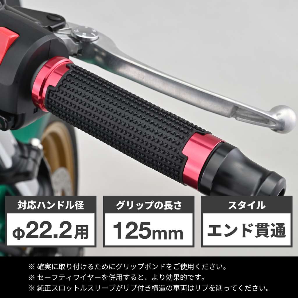 グリッピーグリップ ハンドル径φ22.2用 125mm エンド貫通 アルミリング GG-D-AL-CROSS レッド DAYTONA(デイトナ)