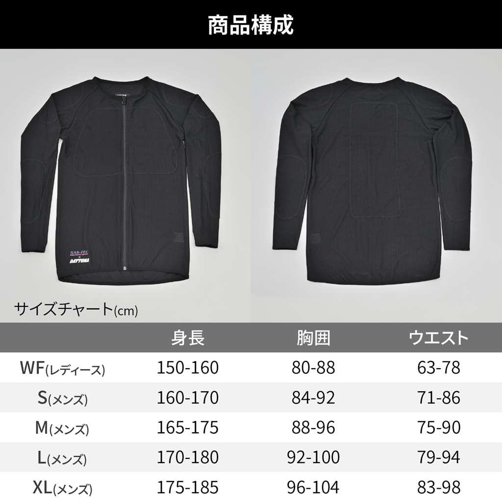※ご自身の体にフィットするものをお選びください。サイズが合っていないウェアを着用されますと、プロテクション効果が充分に発揮されない場合やライディングに支障をきたす場合もあり非常に危険です。