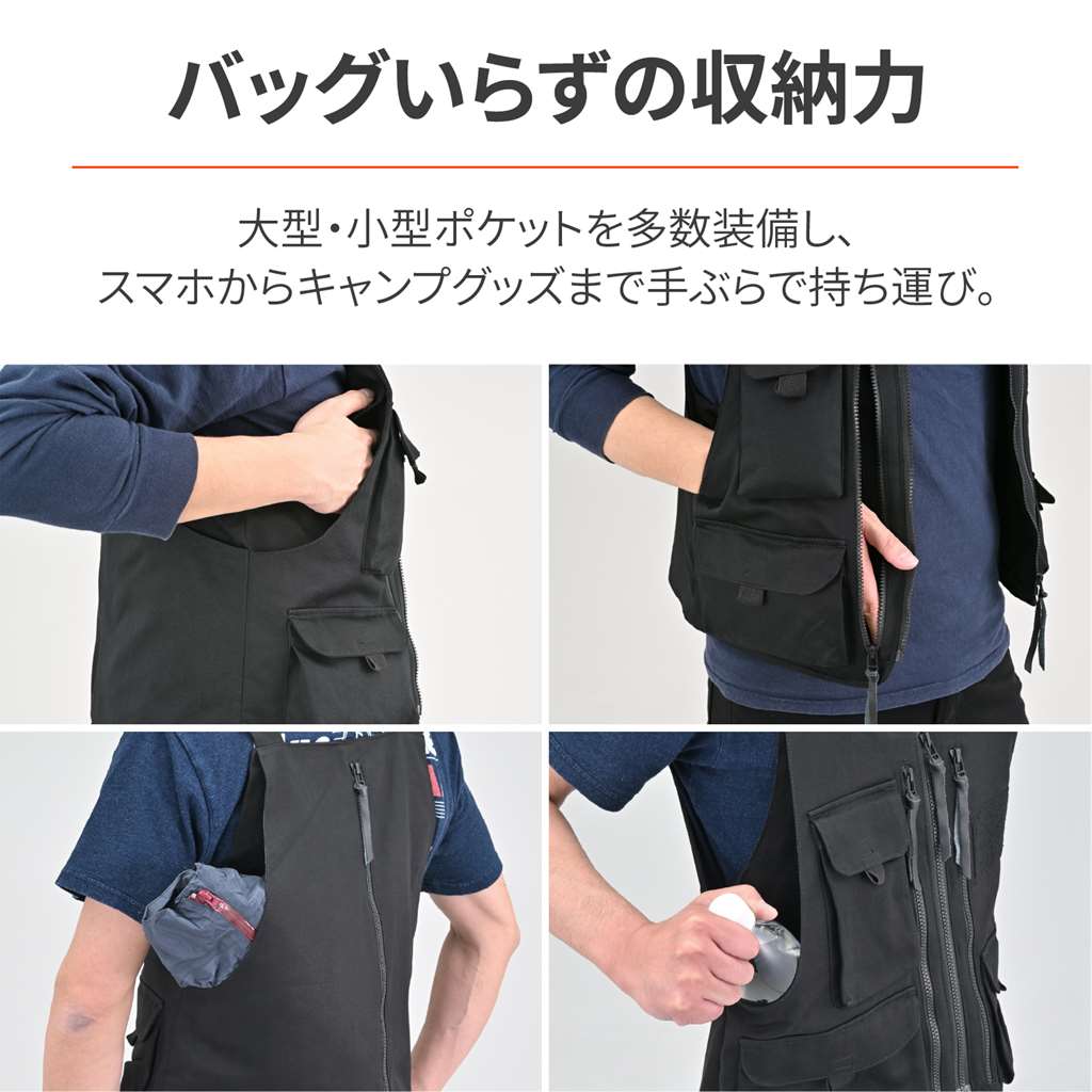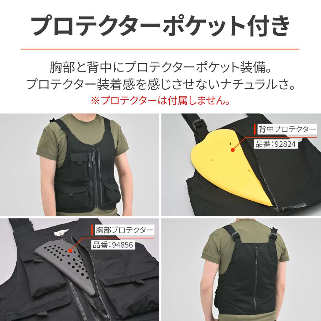 キャンプからタウンユースまで幅広く使えるアウトドアベスト。キャンプをしたいライダーのために、胸部と背中プロテクターが装備できるポケット付き。プロテクターをつけたまま街中を歩けるように、プロテクターの装着感を抑えました。大型・小型のポケットを多数装備しているため、スマホからキャンプグッズまで手ぶらで持ち運びできます。ショルダーベルトによる高さ調整で、ピッタリサイズからラフな着こなしまでシーンに合わせて調整可能。・対応プロテクター:胸部(品番:94856)、背中(品番:92824)・表生地:コットン100%キャンプからタウンユースまで幅広く使えるアウトドアベスト大型・小型のポケットを多数装備。スマホからキャンプグッズまで手ぶらで持ち運び胸部と背中プロテクター用のポケット付き対応プロテクター:胸部(品番:94856)、背中(品番:92824)ショルダーベルトにより、シーンに合わせて高さ調整可能※プロテクターは付属しません。