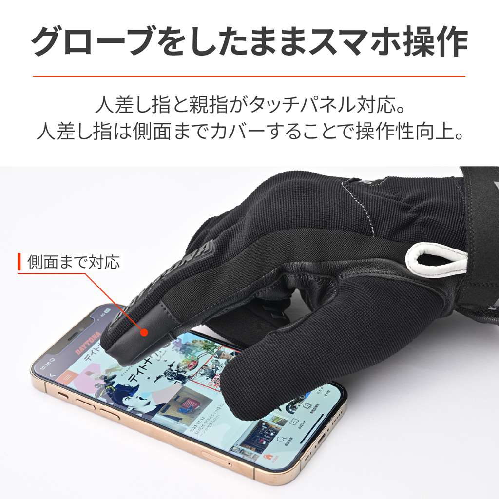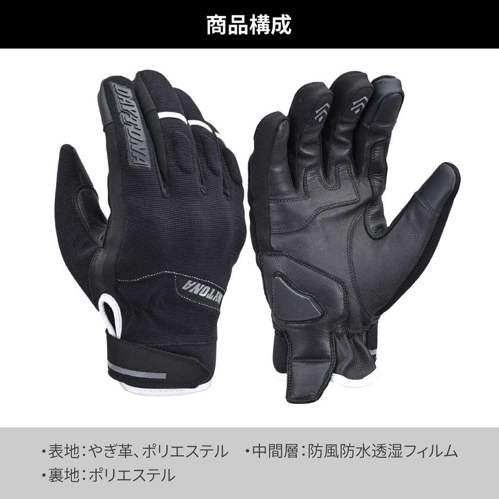 フィット感を重視した操作性の高いソフトフィットグローブ。転倒時もっとも接地しやすい手の平側は、本革を使い摩耗性と耐久性を確保。柔らかい質感ながら、シンサレート中綿と防風防水透湿フィルム入りで暖かいウインターグローブ。シーズン:秋冬フィット感を重視したソフトフィットグローブ手の平に本革採用で、グリップとの摩耗に強くなり安全性を向上防風防水透湿フィルム+シンサレート中綿で暖かいタッチパネル対応。人差し指は側面まで対応することで操作性向上※タッチパネル対応はグローブへの密着度や個人差により感度にばらつきがあります。※経年劣化や使用状況により防水フィルムが破損することがあります。