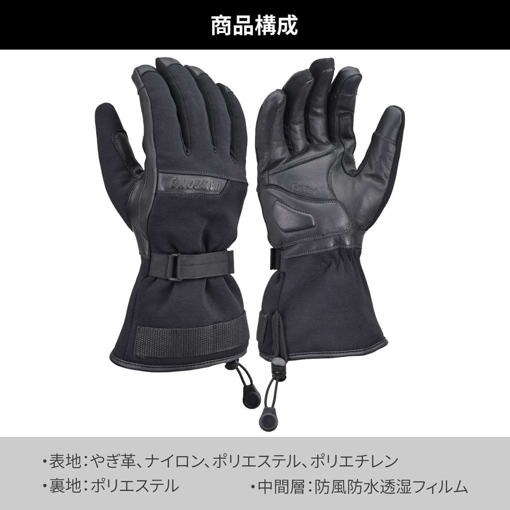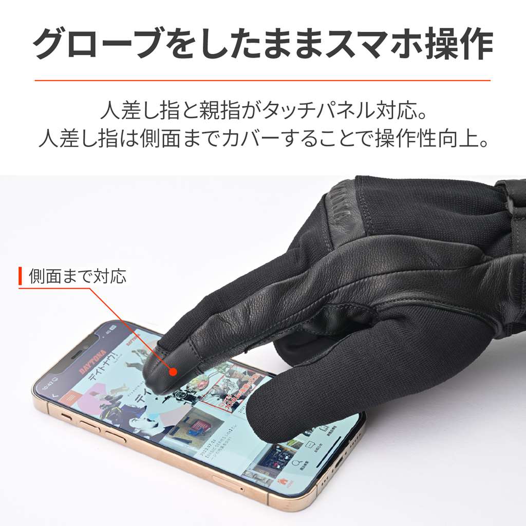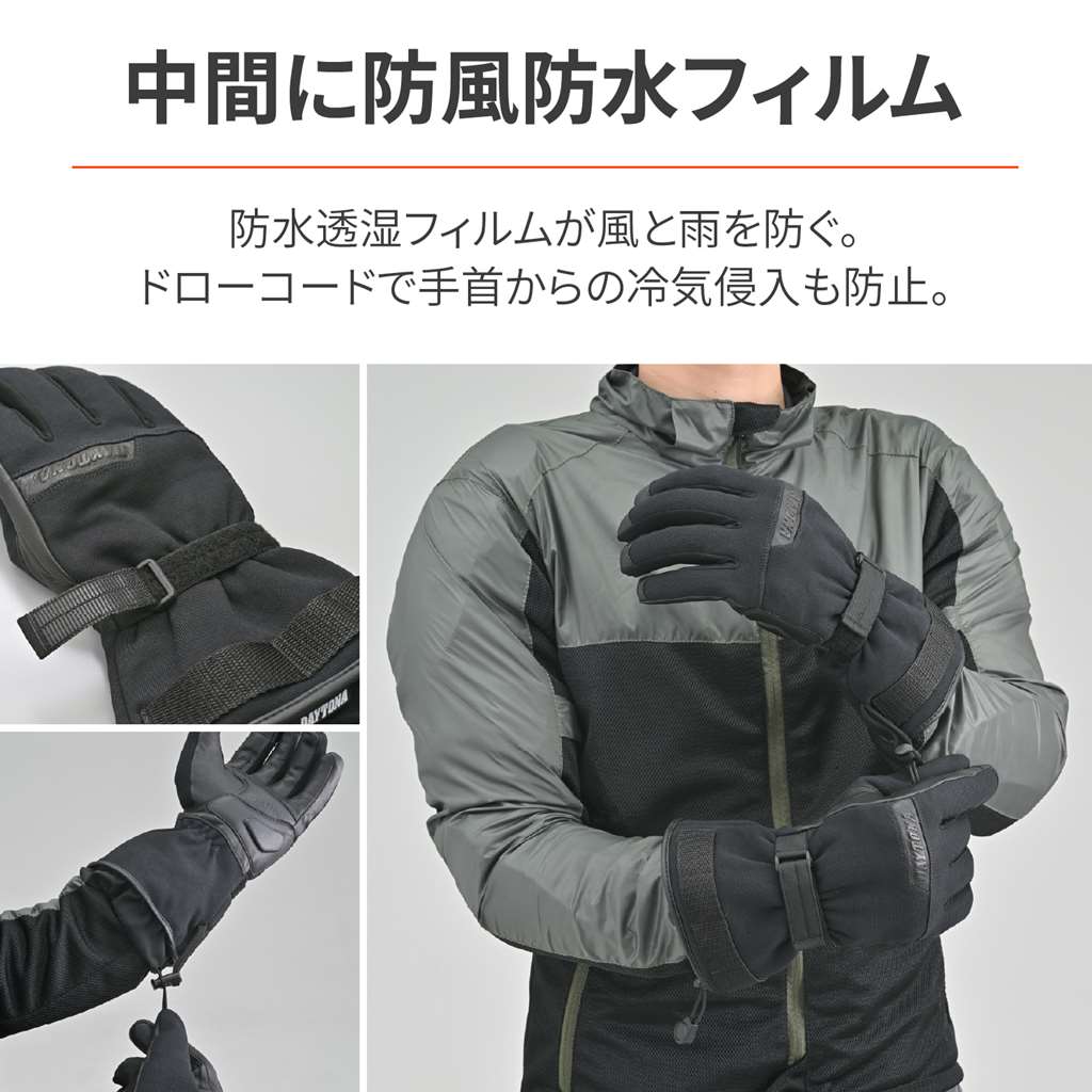 ロング丈で防寒性が高く、ソフトナックルプロテクターを内側にインサートし、安全性と高い操作性を実現。転倒時もっとも接地しやすい手の平側は、本革を使い摩耗性と耐久性を確保。ドローコードで手首からの冷風の侵入を防ぎます。余ったドローコードはパルステープに留めておくことでバタつきを防止。手の平には耐震ゲルをインサートし、ロングツーリングにも最適。防風防水透湿フィルム入り。シーズン:秋冬ドローコードで手首からの冷風の侵入を防ぎ、防?防水透湿フィルムが防風効果を発揮手の平に本革採用で、グリップとの摩耗に強くなり安全性を向上手の平に耐震ゲルを内蔵して振動対策。ロングツーリングでの疲労軽減タッチパネル対応。人差し指は側面まで対応することで操作性向上※タッチパネル対応はグローブへの密着度や個人差により感度にばらつきがあります。※経年劣化や使用状況により防水フィルムが破損することがあります。