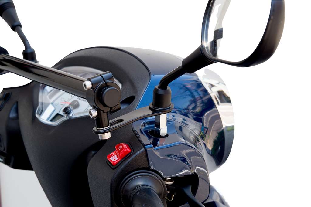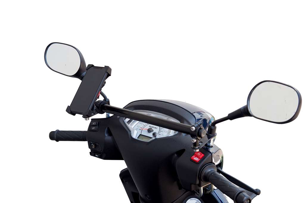 しかし近年テーパーハンドルを採用している車両も増えてきておりハンドル径が一定ではないのでガジェットの装着が難しく、スクーターなどはクランプするハンドルが露出していない車種が多いのでハンドルマウントのガジェットが装着できません。