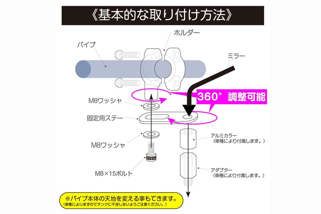 マルチガジェットマウントバーは車種によって取り付け方法が若干異なりますが、複数のガジェットをマウントしても問題ない強度を確保しバー本体は国産ハンドルと同じ22.2φを採用。