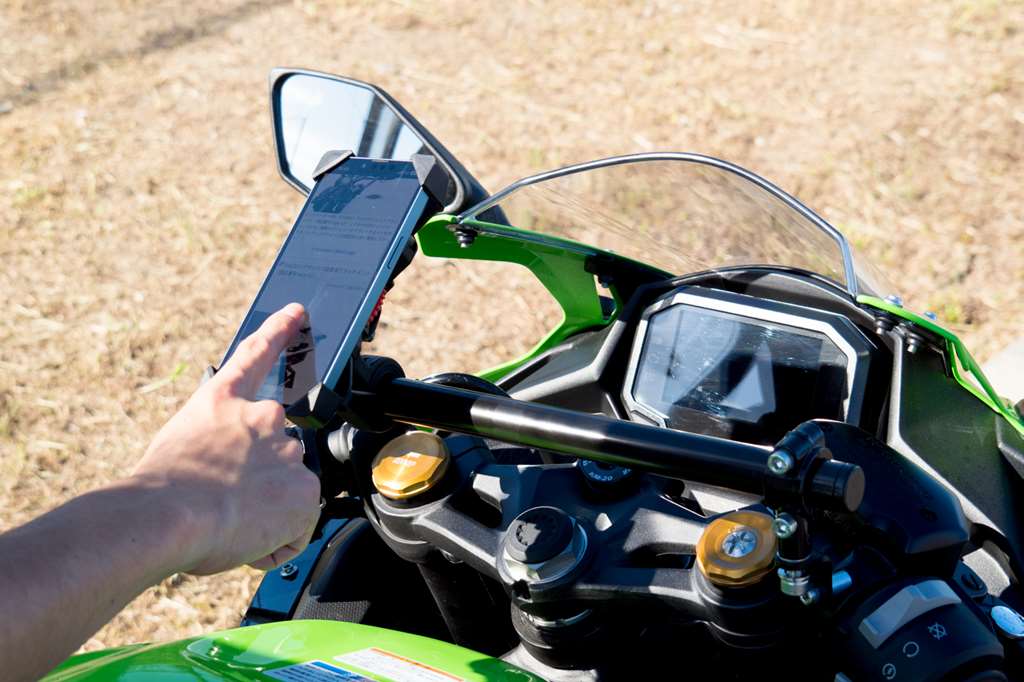・付属品:バー本体・材質:バー…スチール ホルダー…アルミ ステー…スチール ボルト…ステンレススマホやUSBチャージャー、ナビなど複数のガジェットをマウントするバーを作りましたワールドウォークは視認性の良い場所にスマートフォンをマウントする為のバーをリリースしています。大変ご好評頂いていますが、イベントなどでお客様のバイクを拝見すると複数のガジェット(便利な小物)をハンドル周りにマウントしているのを見かけることが増えてきました。しかし近年テーパーハンドルを採用している車両も増えてきておりハンドル径が一定ではないのでガジェットの装着が難しく、スクーターなどはクランプするハンドルが露出していない車種が多いのでハンドルマウントのガジェットが装着できません。またハンドルの形状も真っ直ぐではないので取り付けに苦労する事もあります。そこでワールドウォークが開発したのが複数のガジェットをマウントする事を目的に開発したバー。マルチガジェットマウントバーです。複数ガジェットをマウントするのに最適な剛性、設計を取り入れていますスマートフォンやドリンクホルダー、USBチャージャーやナビゲーションシステムなどハンドル周りにマウントして使うガジェットは増えており、快適にバイクに乗るために複数のガジェットをマウントして使用しているユーザーが増加傾向にあるのは前述したとおりです。マルチガジェットマウントバーは車種によって取り付け方法が若干異なりますが、複数のガジェットをマウントしても問題ない強度を確保しバー本体は国産ハンドルと同じ22.2φを採用。バイク用のガジェットであれば殆どの製品をマウントする事が可能です。車体との干渉などを避けるために車種によってバーの長さは異なりますが3〜5個程度のガジェットをマウントする事を想定しています。メーターの視認性には充分配慮して設計していますメーターにはスピードやガソリン残量、オドメーターなど大事なインフォメーションが表示されます。そのためガジェットを装着した際にメーターの視認性が悪くなってしまうのは避けたいところです。ガジェットを装着する位置は工夫しなければなりませんが、可能な限りメーターの視認性が悪くならない位置にバーがくるように調整しました。ハンドルをフルできってもタンクにあたりにくい設計ですハンドルをフルできった時にスイッチボックスとガソリンタンクのクリアランスが狭いバイクは多々あります。そのためハンドルバーに直接ガジェットをマウントすると干渉してしまうリスクがあります。マルチガジェットバーはハンドルバーよりガジェットをマウントするバーが高い位置になるようしているので干渉しずらい設計です。ガジェットの脱着を繰り返す事を前提に設計したのでバー本体部分は硬く摺れに強いスチールを採用しカチオン塗装で仕上げています。密着性に優れた厚い塗膜を形成することができるため、防錆、防食効果の高い塗装です。バーをクランプする部分は軽量で腐食に強いアルミを採用し塗装で仕上げています。バーエンド部分にはプラスチック製のキャップを採用。雨天時に水などが入るのを防ぎます。全ての素材を同じにするのではなく、場所によって最適な素材を選択しています。※マウントステーのみの商品です。スマホに取り付けるケース部分は別売となっております。※デザイン・仕様は予告なく変更されることがございます。予めご了承ください。※ご自身でお取り付けを行った場合はいかなる場合も補償の対象外となります。ご理解頂きますようお願い申し上げます。