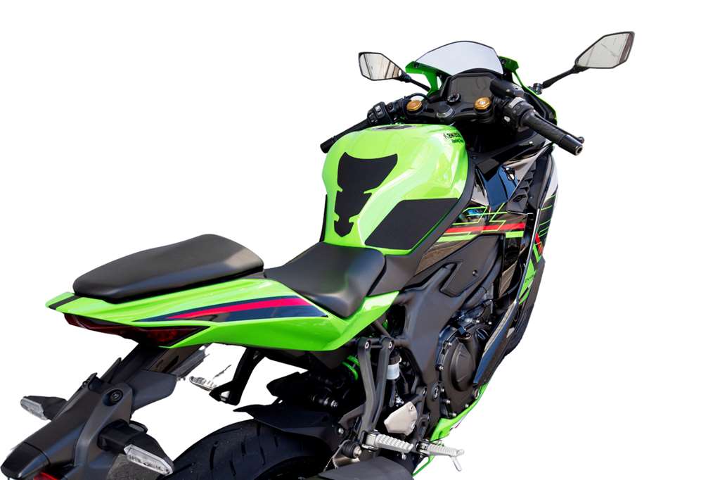 車種ごとに一から型を作製した専用設計商品のため、ZX-4R SE・ZX-4RRの車体にもすんなり馴染みます。