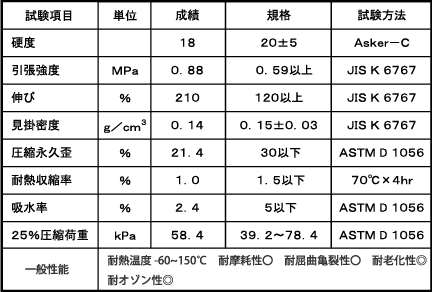(上図参照)屋外使用に適した素材中硬度ゴムの一般特性と仕様です。