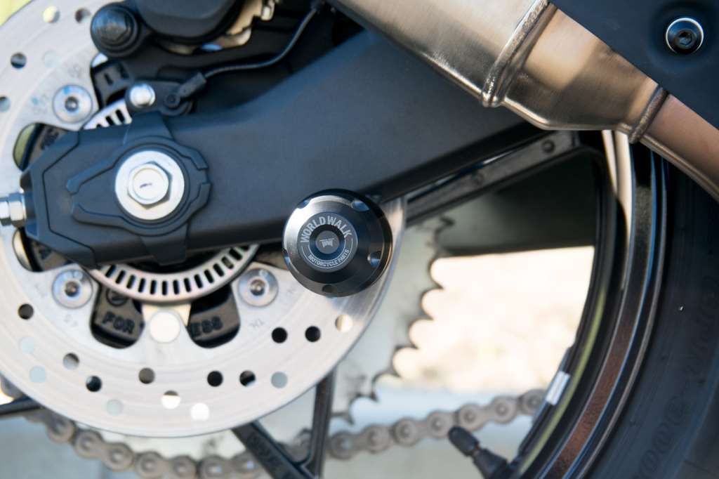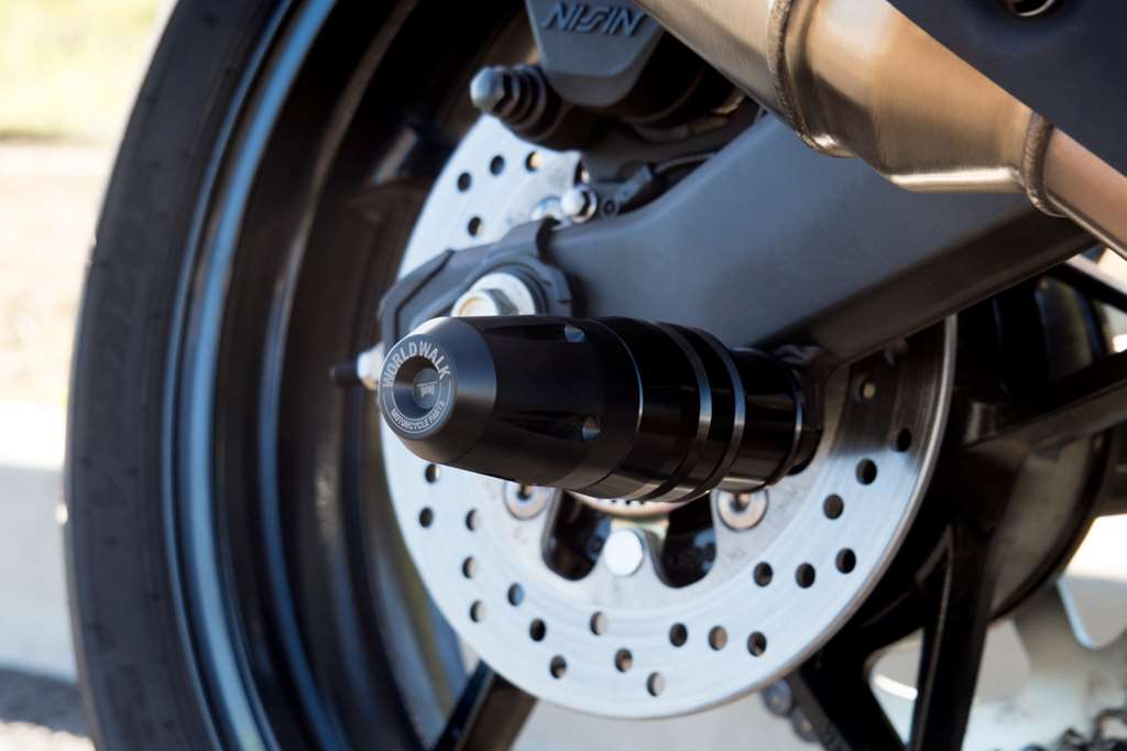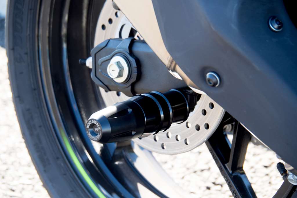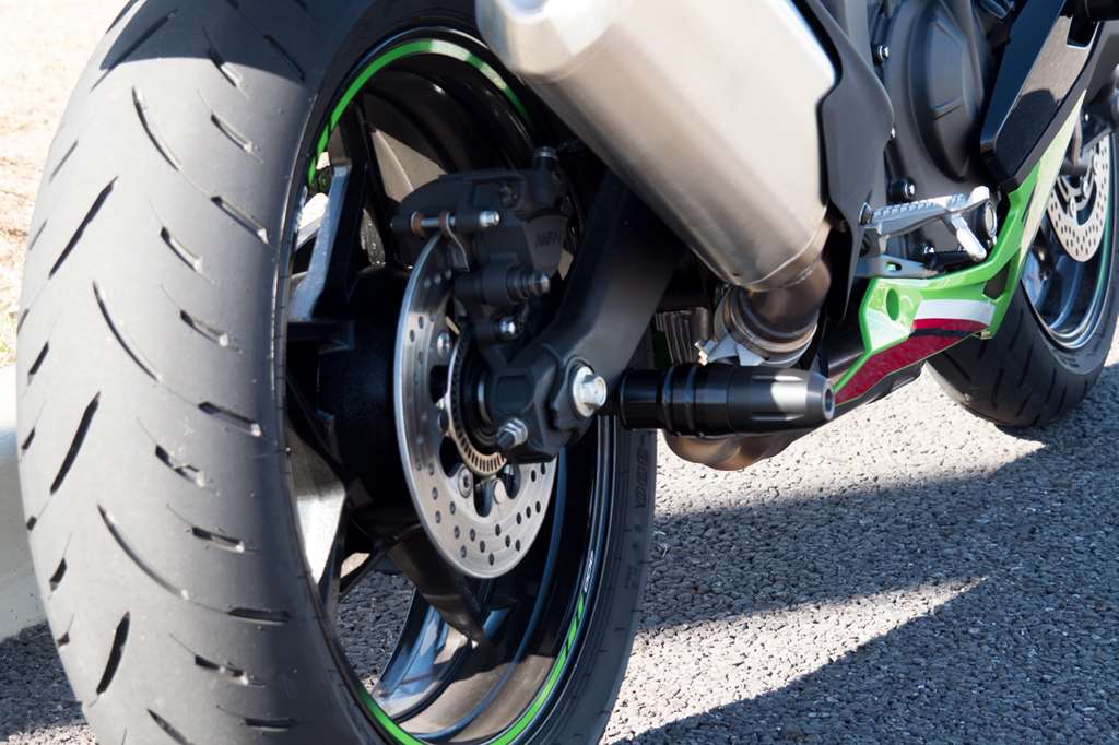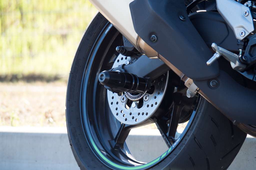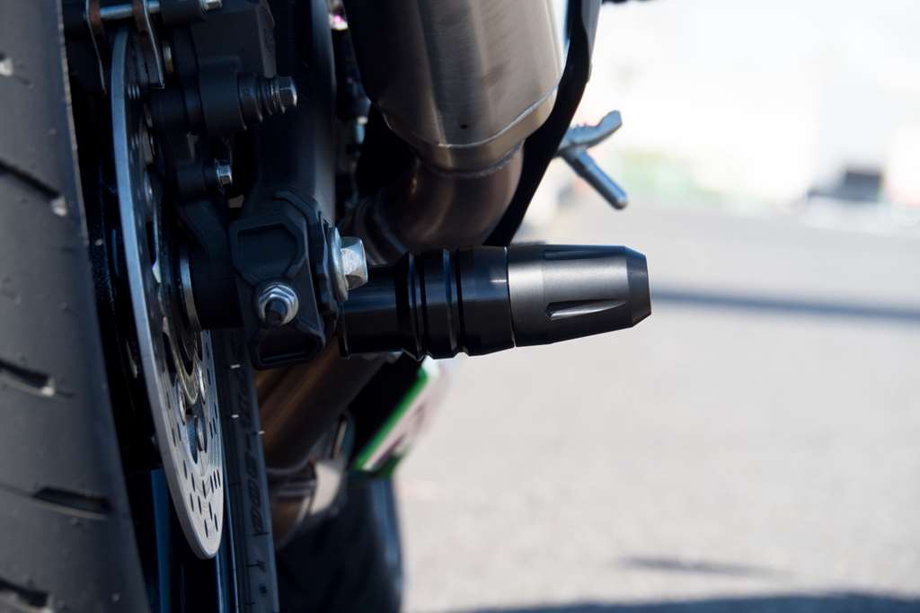 ・重量:340g・材質:【本体】アルミ・【スライダー】ジュラコン・【ボルト】スチール・サイズスペック:※詳細サイズは画像参照・付属品:エンジンガード本体・取り付けボルト類ZX-4R/ZX-4RR専用のマフラーガードです。車体からしっかりとガードが張り出す形となっており、立ちゴケや転倒時などに車体のダメージを軽減してくれます。ブラックアルマイト仕上げの為、車体に取り付けても悪目立ちしません。マフラーへのダメージ軽減マフラーへの致命的なダメージを防ぎます。スイングアーム部分に装着しますが、ホームセンターなどでも販売されているボルトを純正で採用しておりますので、折れや曲がりなどの補修も簡単です。※転倒の仕方によっては未装着時と比べてダメージが大きくなる事もございます。※製品は予告なく仕様変更をする場合もございます。誠に恐れ入りますが予めご了承ください。※ご自身でお取り付けを行った場合は如何なる場合も補償の対象外となります。恐れ入りますがご理解いただけますと幸いです。