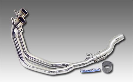 ※フロントパイプ(エキパイ)のみの商品です。サイレンサーは付属しておりませんのでご注意ください。※2010年(平成22年)4月1日より施行された認証制度に適合する認証マフラーではありません。ご理解の程よろしくお願い致します。接続部の位置、形状はノーマルと同じ形状としていますので、メーカー問わずスリップオンマフラーと組み合わせての取り付けが可能です。レースでも使用できるレベルに仕上がっています。ストレート構造になっていますので、装着するだけで大幅に馬力アップします。排気の抜けが良くなりますので、音量も大きくなります。WirusWin製スリップオンマフラーと同時装着した場合の音量は、バッフル装着時 約90db、バッフル非装着時 約94db です。純正の黒塗りスチールエキパイでは物足りない方にオススメです。取り付けは加工の必要なくボルトオンで簡単に装着できます。耐久性、耐腐食性の高いSUS304ステンレス製の2ピース構造です。純正ガスケット、WirusWinステッカー、WirusWInプレート付属します。