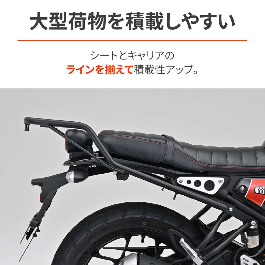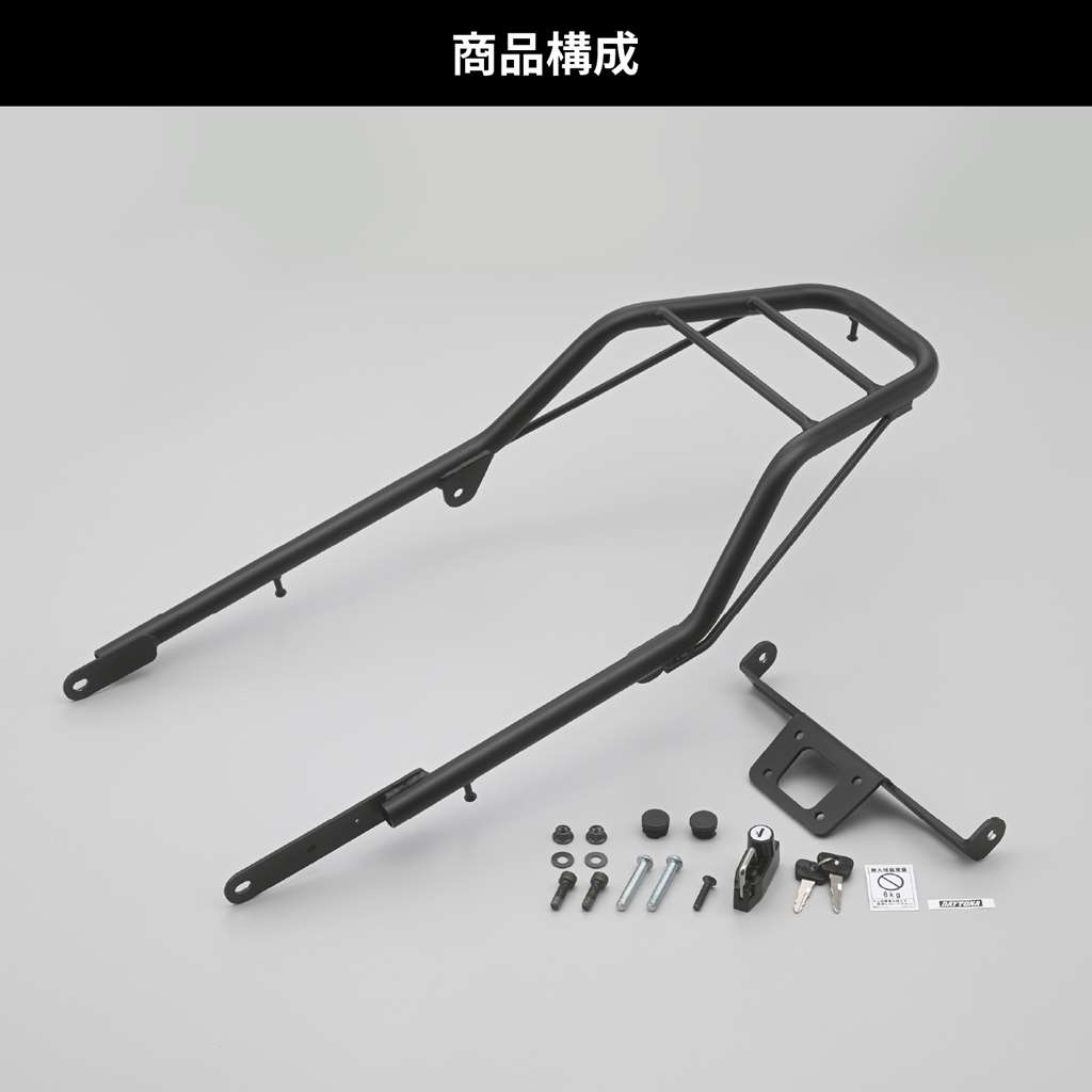 タンデムシートとキャリアの上面を揃えることで大きな荷物も積載できるキャリア。GIVIリアボックスの装着に対応し、モノロックの汎用ベースが取付可能。(ベース込みのBOX重量が5kgまで)スマートに取付が可能な車種専用のヘルメットホルダー付き。LEDフェンダーレスキット(品番:35225)との同時装着可能。・積載部分寸法:長さ212×幅(前側)266×幅(後側)168mm・最大積載重量:6kg・パイプ径:φ22.2・カギ2本付属(スペアキー含む)タンデムシートとキャリアの上面を揃えることで大きな荷物も積載可能GIVIリアボックスに対応。モノロックの汎用ベースが取付可能取付が簡単なヘルメットホルダー付き。スペアキー含めカギ2本付属LEDフェンダーレスキット(品番:35225)との同時装着可能※トップケース取り付けの場合は32L以下のサイズを使用してください。フレーム破損の恐れがあります。トップケース(ベース込み)重量が5kg以下の物をご使用ください。※ヘルメットロックは駐車中のヘルメットの盗難を抑止する商品です。ホルダーにヘルメットを装着したままの走行は危険ですのでお止めください。※ヘルメットロックは盗難やイタズラを抑止するものであり、完全な盗難防止を保証するものではありません。※ヘルメットロックに装着した物の盗難、紛失、破損、故障に関しましては一切保証いたしかねます。あらかじめご了承ください。※カギのみの補修設定はありませんので、カギの紛失にはご注意ください。(カギ2本付属)※ヘルメットホルダー(品番:34989)との同時装着不可。