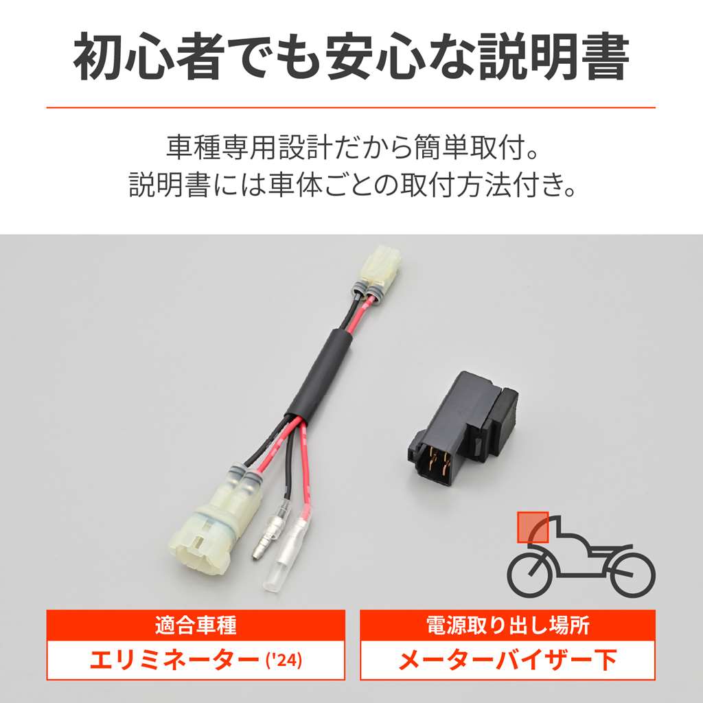 かんたん電源取出しハーネス メーターバイザー下専用 フロント用 DAYTONA(デイトナ) ELIMINATOR(エリミネーター)24年