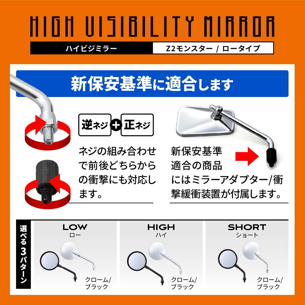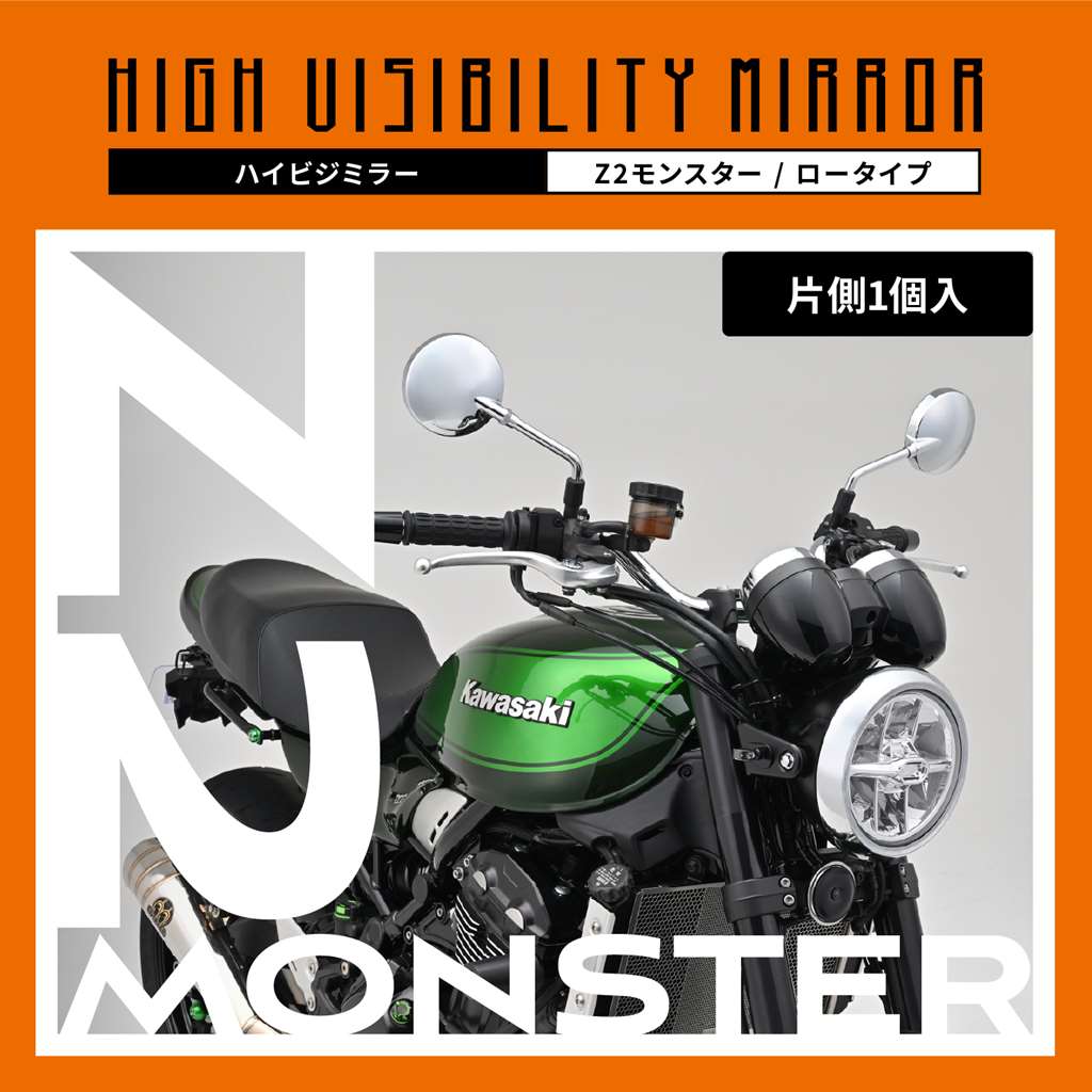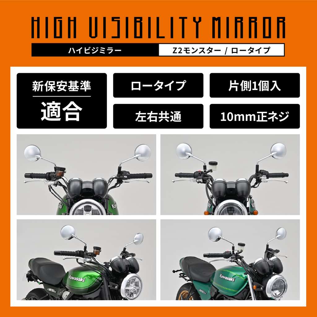 ハイビジミラー 片側1本 左右共通 10mm正ネジ 新保安基準適合 Z2モンスターミラー ロー/クロームメッキ DAYTONA(デイトナ)
