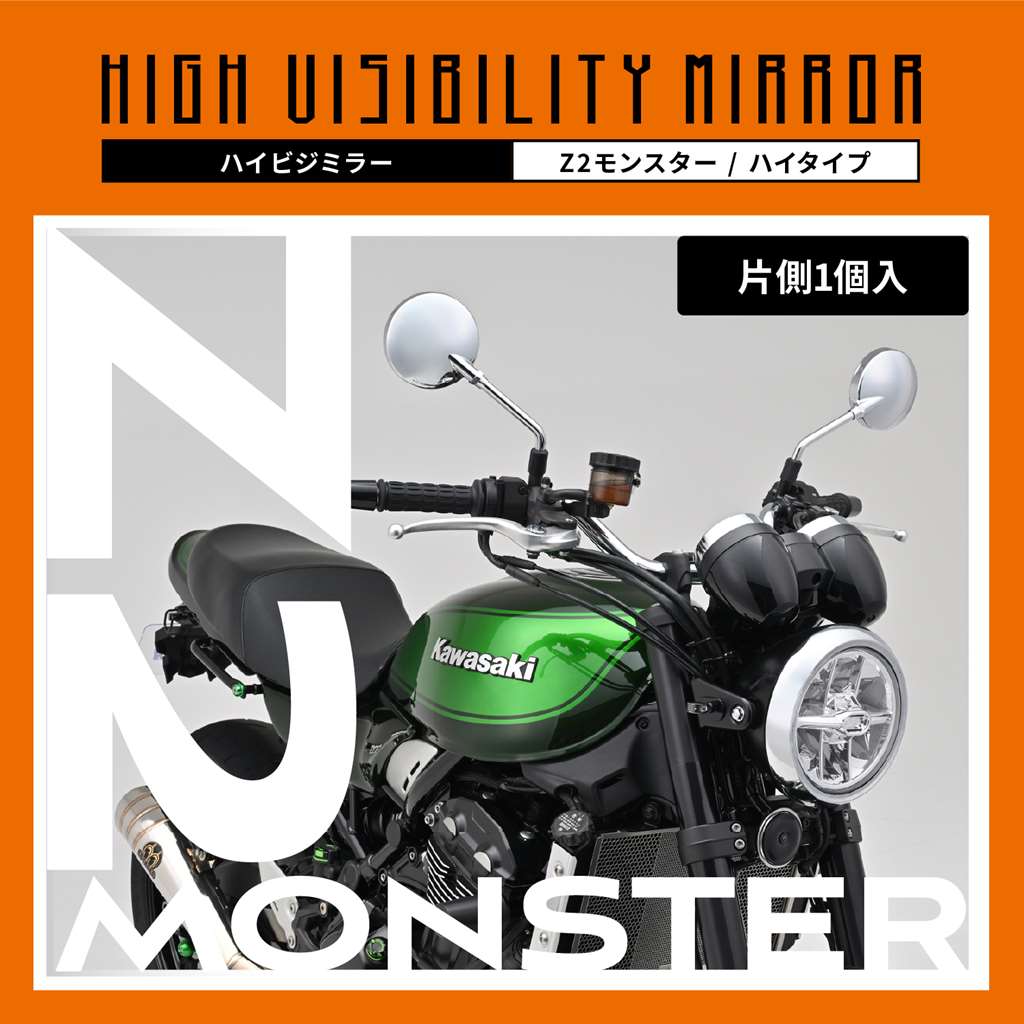 ハイビジミラー 片側1本 左右共通 10mm正ネジ 新保安基準適合 Z2モンスターミラー ハイ/クロームメッキ DAYTONA(デイトナ)