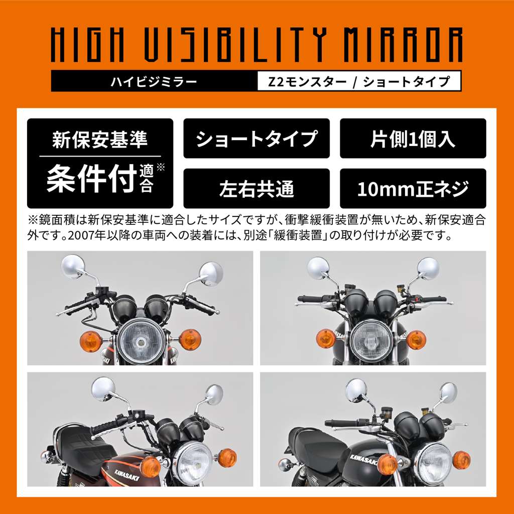 ハイビジミラー 片側1本 左右共通 10mm正ネジ Z2モンスター ショート/クロームメッキ DAYTONA(デイトナ)