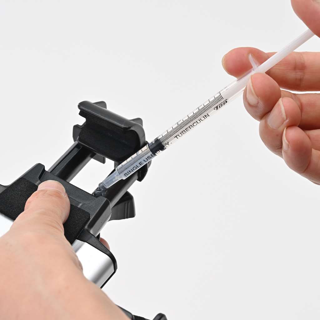細かな作業に適した小型シリンジ。オイルや添加剤など、少ない量の液体を測るときに便利です。グリスを詰めて、細かい部分のグリスアップに最適。容量:1ml本体:PVC ゴム部分:ブタジエンゴム少ない量の液体を測るときに便利なミニシリンジ手を汚す事なく細部のグリスアップも可能容量:1ml本体:PVC ゴム部分:ブタジエンゴム※使用後は内部に溶剤が残らないよう、きれいに洗浄してください。