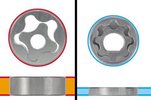 SP武川製スーパーオイルポンプは吐出量を純正比約1.8倍増加し、不安定なアイドリング時の油圧確保と回転上昇に伴う油圧の変化に対応する為、オイルラインに一定の油圧に達した時のみバルブが開く、リリーフバルブ機能を設置しております。これにより、冷間時におこる回転上昇時の過大な油圧上昇を抑え、駆動部やシール部の損傷を抑えます。更にエンジン高回転時には、必要以上のオイル量を吐出させず、パワーロスを低減し、オイルレベルを安定させます。