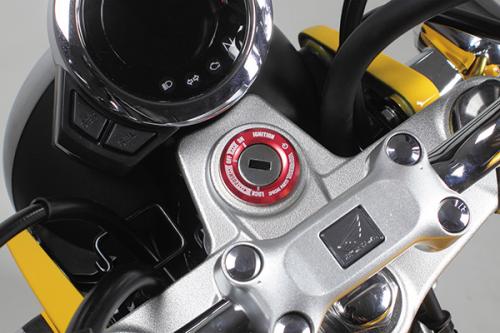 メインスイッチに貼りつけることでドレスアップ効果を高める“メインスイッチカバー”本製品を樹脂製のノーマルメインスイッチに貼りつけることで、アルミ質感とデザイン性を高めたレーザーマーキングにより、フロント周りを美しく演出します。カバー本体はアルミ材を精巧に削り出しカラーアルマイトを施しています。更にアルマイトの表面には視認性に優れ、装着時のドレスアップ効果を高めるレーザーマーキングを施しています。SP武川社ロゴのレーザーマーキング入り