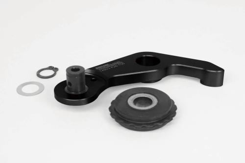 カムチェーンへの追従性と適切なテンションを保つことが出来る高強度カムチェーンテンショナー取り付け確認車両GROM(JC61-1000001〜 / JC61-1300001〜)GROM(JC75-1000001〜)MSX125(MLHJC618_D5000001〜)MSX125SFモンキー125(JB02-1000001〜)スーパーカブC125(JA48-1000001〜)CT125(JA55-1000001〜)ノーマルテンショナーアームは板材による成型加工の為、プッシュロッドへの接地面積が少なく、プッシュロッド先端のゴムが板厚の形に陥没します。又、ハイパワーエンジンにて長期使用するとノーマルテンショナーアームの変形が酷くなり、プッシュロッドヘッドを破損させることがあります。この場合、カムチェーンに適切なテンションがかからない為、エンジントラブルの原因となることがあります。SP武川社製テンショナーアームは強度の高い超々ジュラルミン材を精巧に削り出し、厚みを増やすことでアーム本体の強度を高め、更にプッシュロッドへの接地面積を増やしています。これにより、テンショナーアームの強化だけでなく、プッシュロッド先端のゴムの陥没や破損を軽減することが出来、プッシュロッドの寿命が大幅に向上します。アーム中央には、テンショナーアームの振れを制御する専用カラーを採用している為、プッシュロッドの力を正確にカムチェーンへ伝えることが出来ます。又、アーム本体にオイル穴を設けており、可動部へオイルの潤滑を行います。SP武川社製テンショナーローラーはノーマルに比べ、ローラー本体を大径化することでカムチェーンへの適切なテンションを保つと共にローラーの磨耗を軽減しています。又、ノーマルには無いスプロケット形状を採用することで、カムチェーンへの追従性を高めています。ノーマルテンショナーローラーはローラー本体の取り外しが出来ませんが、本製品はローラーの脱着が可能な構造を採用している為、ローラー交換が可能となり、メンテナンス性に優れています。必ず、適度なダンパー効果のある純正及び、SP武川社製プッシュロッドヘッドをご使用下さい。カムチェーンテンショナープッシュロッドヘッド 00-01-0279他メーカーで販売されている強化プッシュロッドヘッドは、カムチェーンへの負荷が大きくエンジントラブルの原因となる為、同時装着を行わないで下さい。カムチェーンテンショナーアームの交換時、ノーマルジェネレーターカバーを外す為、別途L.クランクケースカバーガスケットが必要になります。L.クランクケースカバーガスケット 00-02-0357