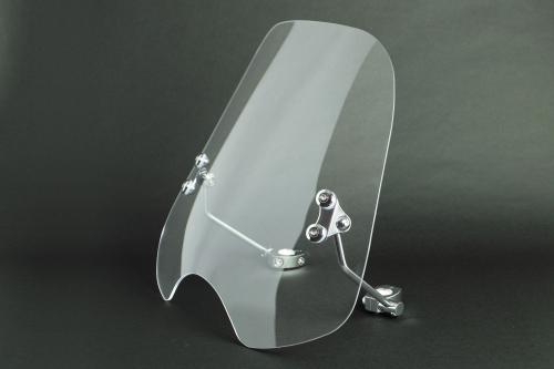 汎用(ハンドルパイプ径Φ22.2mm/Φ25.4mm用)曲面を多用したシンプルな形状のスクリーンで、様々な車種に似合います。首から下の上半身をカバーする程度の中型サイズです。ハンドルクランプタイプのステーは頑丈に固定が出来、各部の調整で色々な車種のお好みの位置に取付けが可能です。取付け確認車両クロスカブ50(AA06) クロスカブ110(JA10/JA45/JA60)CT125(JA55/JA65) GROM(JC61/JC75/JC92)Ape50/100 ZOOMER DUNKダックス125(JB04)モンキー125(JB02/JB03)モンキー125 タイモデル(MLHJB02/MLHJB03)レブル250(MC49)/500(PC60)/1100(SC83) ※ヘッドライトカウル装着車は適合外。CL250(MC57)CL500(PC68)GB350(NC59)GB350S(NC59)CRF250L(MD38/MD44)SEROW250(B7C1/B7C4) SR400 YB125GN125 Z125 PRO KSR PRO W650ハーレーダビッドソン XL1200Lエリミネーター/エリミネーターSE(8BL-EL400A)■スクリーンサイズ:H430mm×W440mm×t3.7mm■対応ハンドル径:22.2mm/25.4mm※車体カバーを被せた状態で駐車する場合は、日光の当たらない風通しの良い場所に止めて下さい。(カバー内に熱がこもり、スクリーンが変形する恐れがあります。)※車体カバーをご使用になる場合は、スクリーンに無理のかからないサイズの物をご使用下さい。(スクリーンが変形したり、ステーが曲がる恐れがあります。)※スクリーンに直射日光が当たらないように駐車して下さい。(スクリーンの反射で日光が収斂し、車両や周りにある物を傷める恐れがあります。)