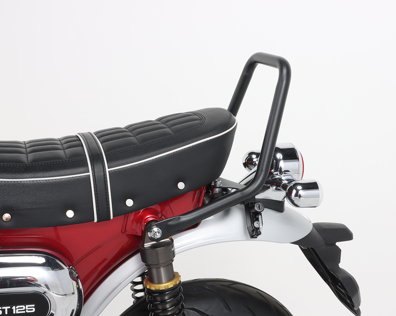 車体の取り回しにも便利な、リヤ周りを引き締めるグラブバーです。ノーマルグラブバーよりも長め設計で、タンデム時の握りやすさが向上します。ボルトオングラブバー径:Φ22.2ブラック:スチール製ブラック塗装※ノーマルリヤキャリアーと併用不可※下記のキタコ社製品と併用可ヘルメットホルダー(80-564-13200)サイドバックサポート(80-655-13201)