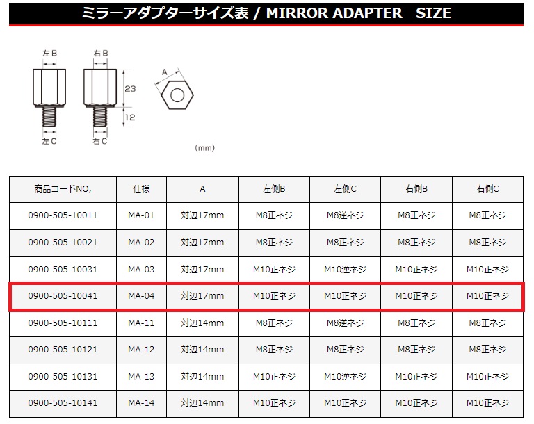 ミラーアダプターセット MA-04 KITACO(キタコ)