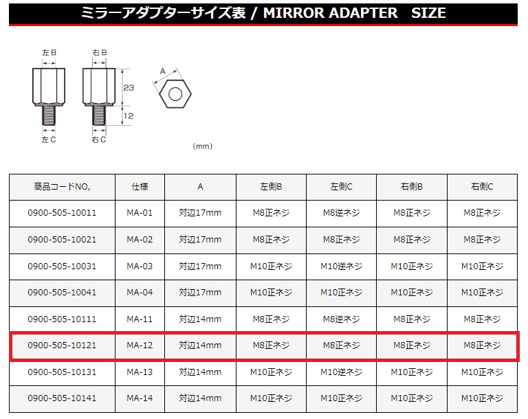 ミラーアダプターセット MA-12 KITACO(キタコ)