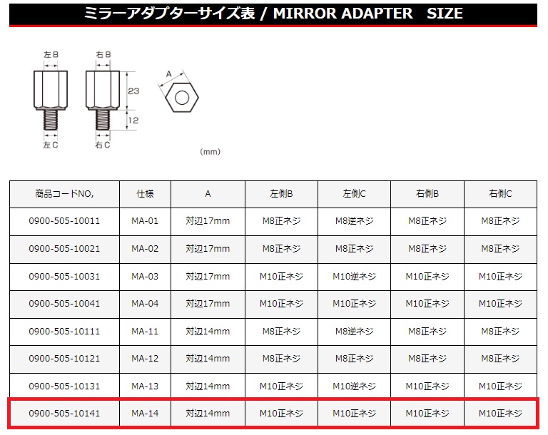 ミラーアダプターセット MA-14 KITACO(キタコ)
