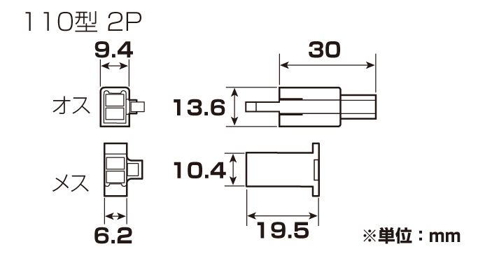 コネクターSET 110型タイプ 110型/2極(オス/メス)/1SET KITACO(キタコ)