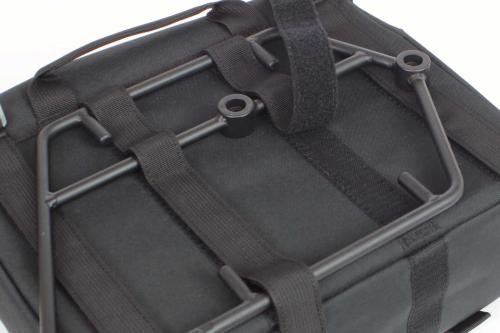 バッグ生地の内部ポケットに補強版を設置することで、積載時、バッグ形状の崩れを防止します。又、背面部の補強板には一部アルミ材を使用し、強度を高めております。