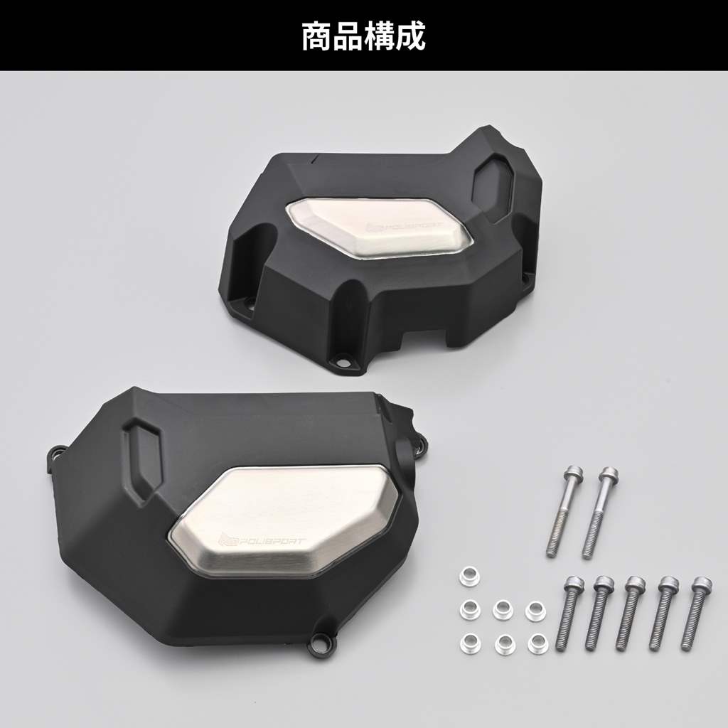 Polisportから生み出されたエンジンプロテクター。高耐久性プラスチックとステンレスプレートを組み合わせ、エンジンカバーを守ります。車両の雰囲気をそのままに防護性を備えました。車種専用設計でエンジンカバーとプロテクターの隙間にゴム製のダンバーを組み込むことで、衝撃を分散させます。【適合車両】MT-09(14-20) 【RN34J/52J】XSR900(15-21) 【RN46J/56J】トレーサー900(14-20) 【RN36J/51J】・左右セット・本体:高耐久性プラスチック、金属プレート:ステンレス適合車種:MT-09(14-20)、XSR900(15-21)、トレーサー900(14-20)車両の雰囲気をそのままに防護性を備えたエンジンカバープロテクター高耐久性プラスチックとステンレスプレートのハイブリッド素材でエンジンカバーを守る車種専用設計でゴム製のダンバーが衝撃を分散左右セット※純正カバーを外す場合があります。※転倒などによる商品や車体の破損は補償対象外です。※海外製品のため、告知なく仕様変更する場合があります。※ボルトを取り外した際にエンジンオイルが出てくる場合があります。