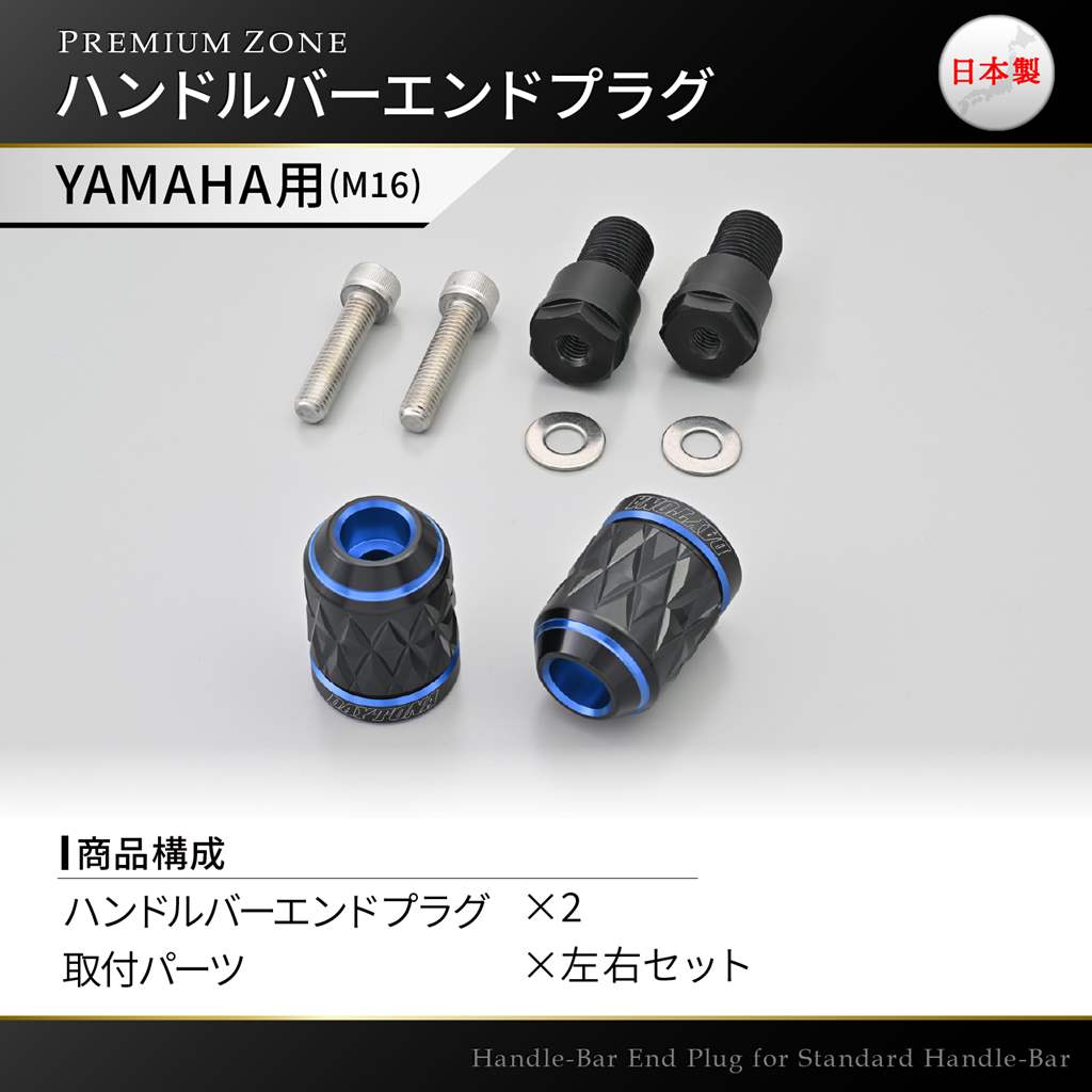 PREMIUM ZONE(プレミアムゾーン)バーエンド ヤマハ(M16)用 KIRIKO ブルー DAYTONA(デイトナ)