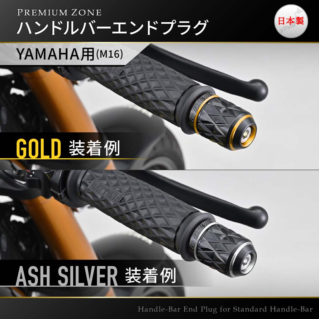 PREMIUM ZONE(プレミアムゾーン)バーエンド ヤマハ(M16)用 KIRIKO アッシュシルバー DAYTONA(デイトナ)