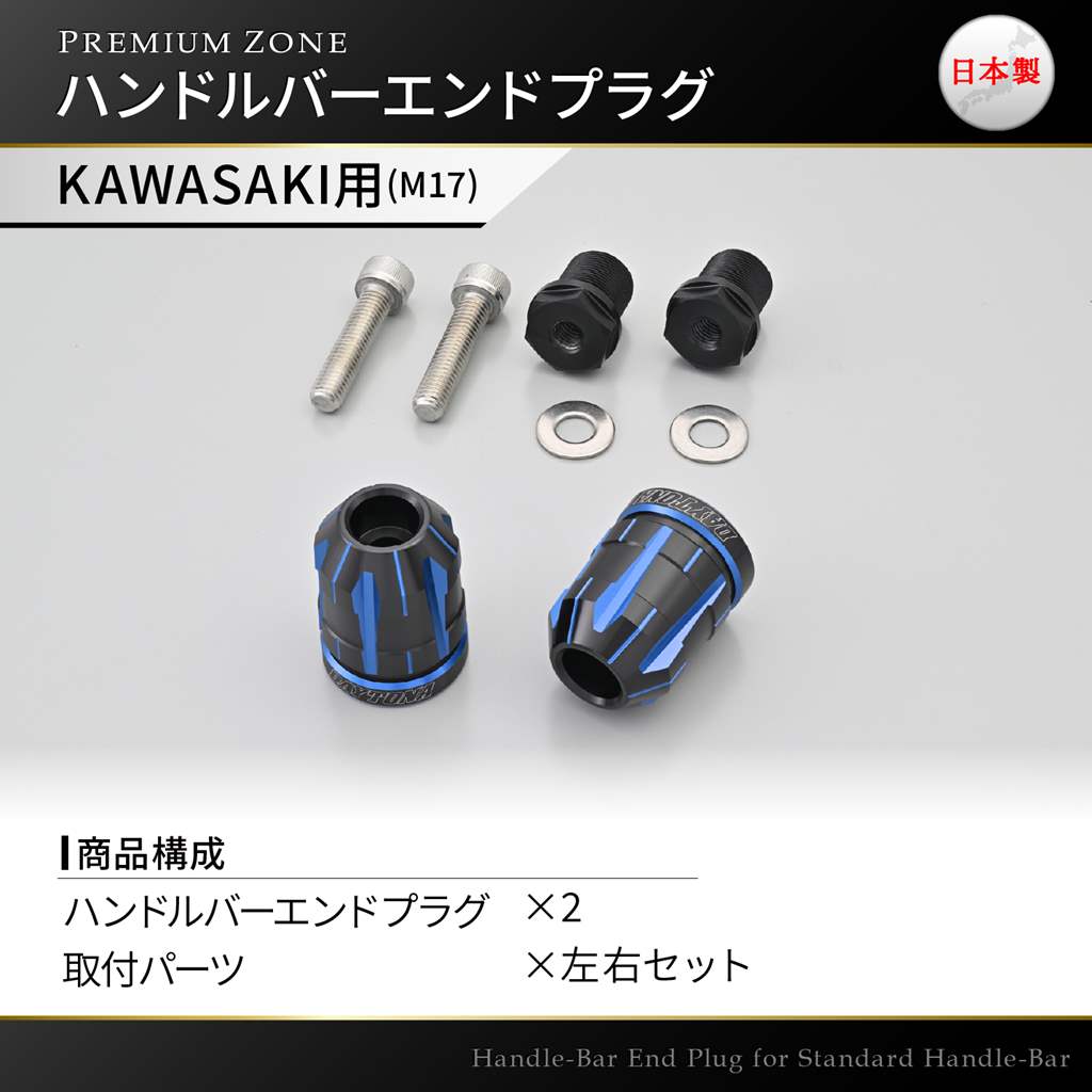 PREMIUM ZONE(プレミアムゾーン)バーエンド カワサキ(M17)用 TECHNO ブルー DAYTONA(デイトナ)