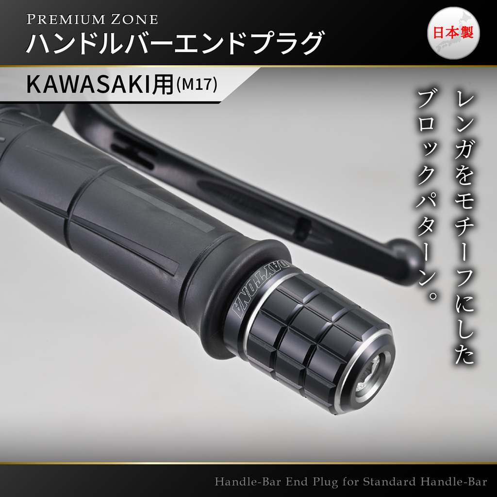 PREMIUM ZONE(プレミアムゾーン)バーエンド カワサキ(M17)用 BRICK アッシュシルバー DAYTONA(デイトナ)