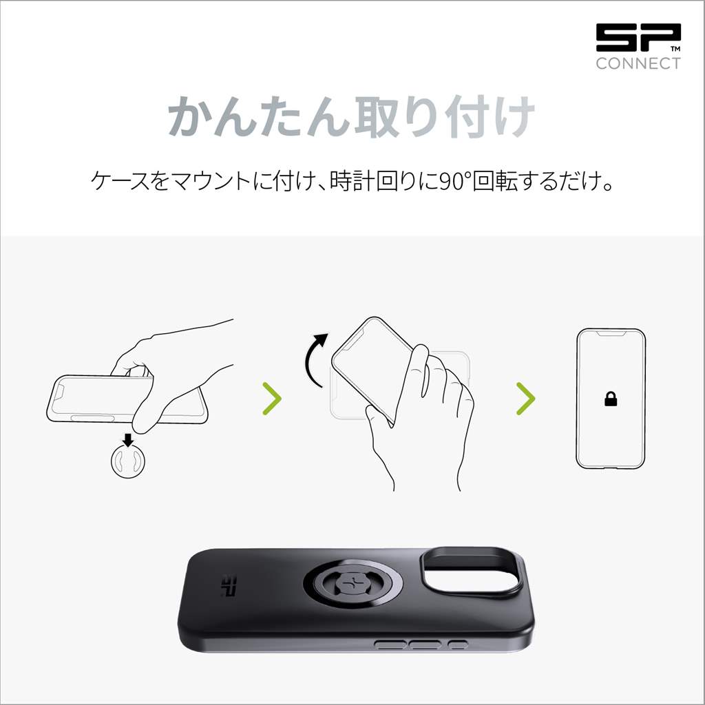 iPhone 15 Pro用 フォンケース90°捻るだけで固定できるSPコネクト独自の機能。【SPC+になって40%薄く・25%強くリニューアル】・40%薄く、フラットな背面のケースにリニューアル。机上に安定して置くことができます。・MagSafe対応。ワイヤレスチャージングモジュールを使用すれば、オートバイ装着時も高速ワイヤレス充電が可能です。・新型マウント「SPC+」は、はめ合い面積25%アップ。iPhone 15 Pro用 フォンケース(SPC+)新型クランプ「SPC+」採用。従来型クランプ「SPC」に対応する変換アダプター付属MagSafe対応で、オートバイ装着時も高速ワイヤレス充電が可能90°捻るだけで固定できるSPコネクト独自の機能商品構成:フォンケース×1、変換アダプター×1※【SPC】用変換アダプタ―が付属します。ただし、ケース付属のアダプターは樹脂製のため、【SPC】にご使用の場合は早めにマウントヘッドをアルミ製のSPC+用(品番:35219)へ変更することをおすすめします。※MagSafeのロゴは、米国および他の国々で登録されたApple Inc.の商標です。