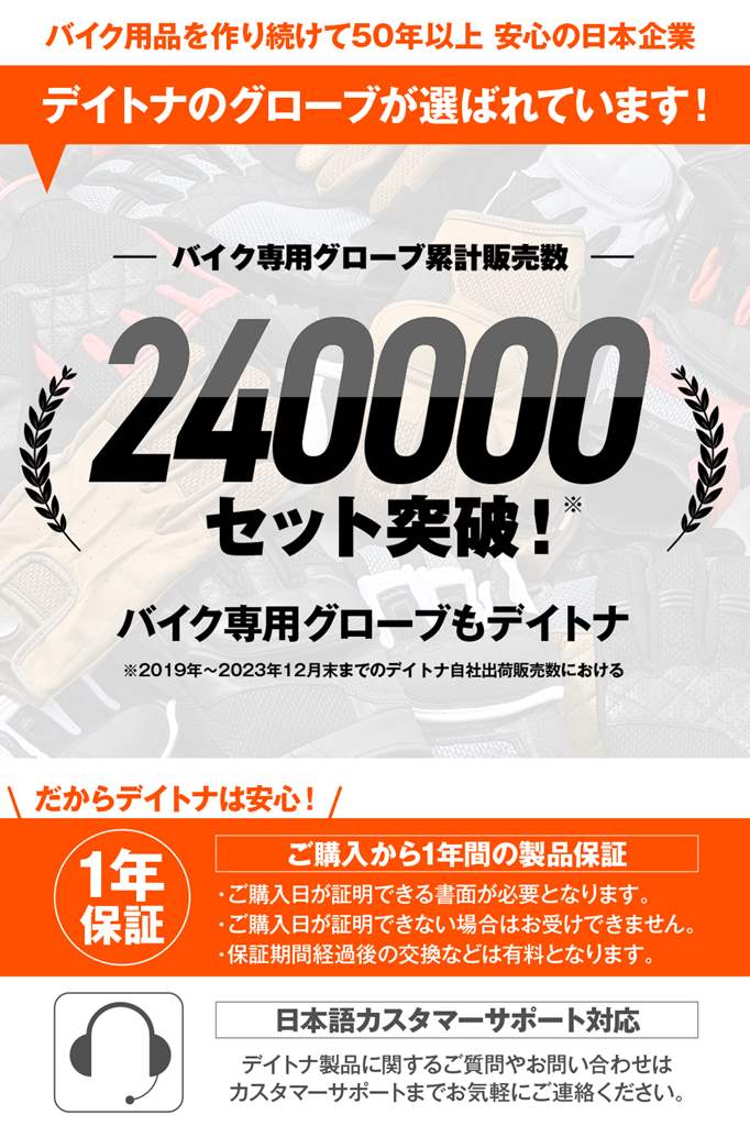 ナックル、指、手首のプロテクターやパームスライダー、ケブラー生地に加えて手の平や各部に本革を多用した安全性の高いモデル。