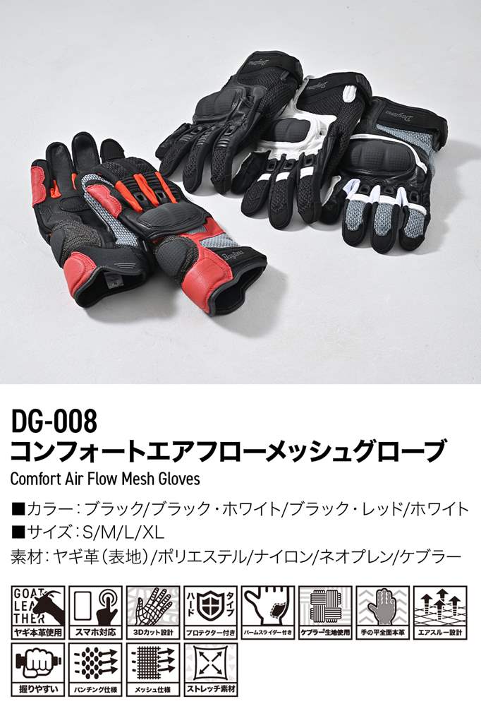 DG-008 コンフォートエアフローメッシュグローブ ホワイト Mサイズ DAYTONA(デイトナ)