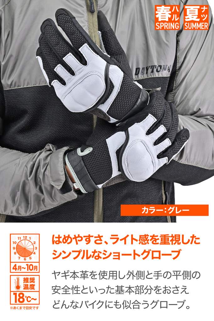 DG-009 ショートエアフローメッシュグローブ グレー Lサイズ DAYTONA(デイトナ)