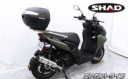 SHAD(シャッド) 製リアボックス【 SH29 】(サイズ:380mm (L) x 400mm (W) x 300mm (H)・本体重量:約2.6kg・容量:29L)を装備したタンデムバーです。リアボックスと、タンデムバーの同時装着を可能にしたニューアイテムです。リアボックスは車種よっては加工や専用ステーを別途購入しないと取り付けできませんが、タンデムバーにリアボックス用ベースブラケットを融合する事によって無加工で装着できるようにしました。タンデムバーはバランスの良い32mm径を採用。パッセンジャーが握りやすく力を入れやすいので、安全性も高くなっております。リアボックスのスペックはディフューザーダクトなどの付加物のある大きめのフルフェイスのヘルメットが1個と、グローブなど+αが収納できるサイズで最大積載量は3kgです。材質は無塗装ブラックの材質PP(ポリプロピレン)で、丈夫な作りになっています。開閉はレバーを押すだけで簡単にできます。付属のキーでロックも可能。リアボックスの取り外しはレバーを押すだけで簡単に脱着でき、持ち運びが簡単にできるのでいたずらや盗難から大切な荷物を守る事ができます。タンデムバーの材質は、耐久性、耐腐食性の高いSUS304ステンレス製です。その他汎用リアボックスも取り付け穴を利用して取り付けできます。(穴あけ加工が必要な場合がございます。)