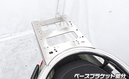 リアボックスは車種よっては加工や専用ステーを別途購入しないと取り付けできませんが、タンデムバーにリアボックス用ベースブラケットを融合する事によって無加工で装着できるようにしました。