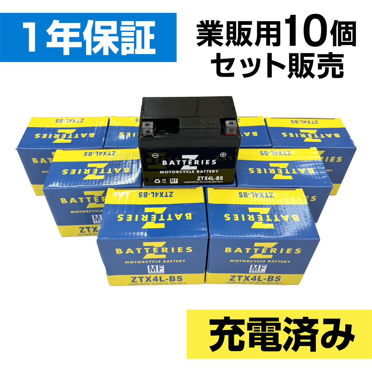 バイクバッテリー ZTX4L-BS 10個セット(YTX4L-BS YT4L-BS互換) ハイパフォーマンス メンテナンスフリー AGM ZBATTERIES(Zバッテリー)