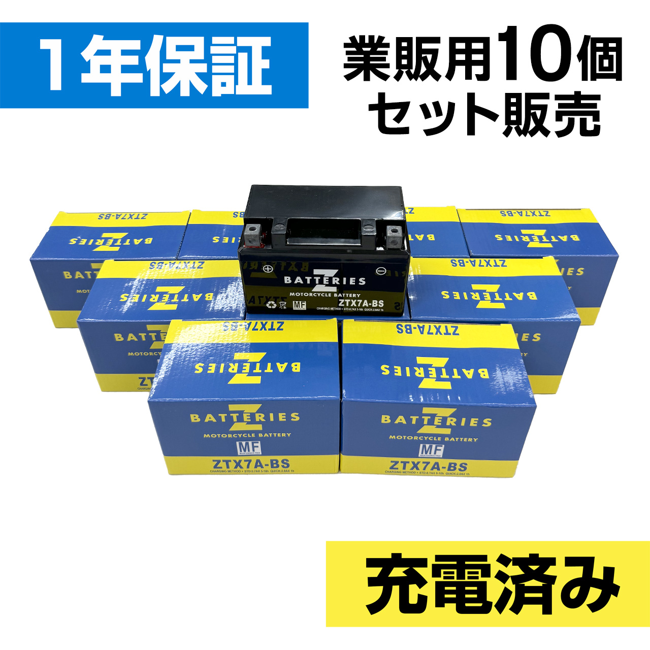 バイクバッテリー ZTX7A-BS 10個セット(YTX7A-BS互換) ハイパフォーマンス メンテナンスフリー AGM ZBATTERIES(Zバッテリー)