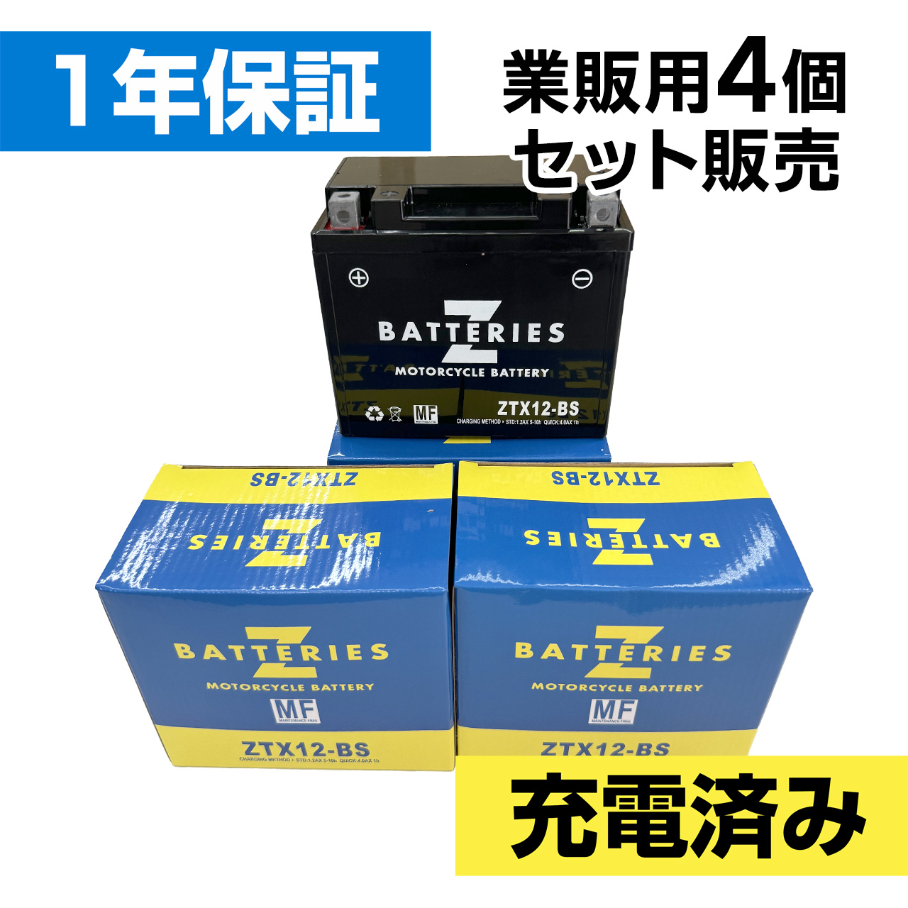 バイクバッテリー ZTX12-BS 4個セット(YTX12-BS互換) ハイパフォーマンス メンテナンスフリー AGM ZBATTERIES(Zバッテリー)