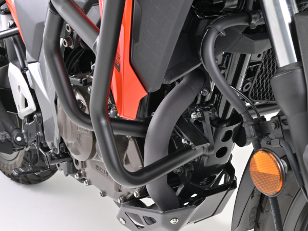デザインと強度を両立不慮の転倒の際、ライダーや愛車へのダメージを軽減させるエンジンガード。分割構造とすることでデザインも重視。左右を連結することで高い強度を発揮します。【意匠登録出願中】・スチール製マットブラック塗装・パイプ径:Φ25.4(メインパイプ)・高強度ボルト付属・総重量:約6.2kg・Lower(43511)との同時装着可能。※樹脂パッド(リダクションスライダー)は付属しません。(装着可能)※純正マフラー以外は同時装着できない場合があります。【SUZUKI】車種:V-Strom250SX年式型式:2023(DS250RLM_EL11L)