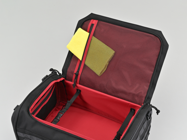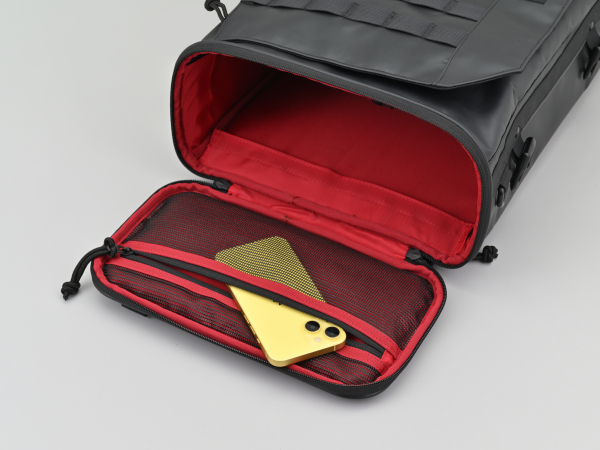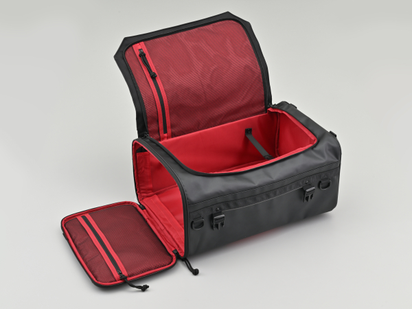 バックパックとしての使いやすさを向上!トップとサイドの2か所が大きく開くので、シートバッグとしてもバックパックとしても使いやすいと好評の2WAYシートバッグをリニューアル。表地は水に強いターポリン。30Lサイズで、ホテル一泊程度の荷物に加えレインウエアやお土産を入れる余裕も生まれます。内装は裏地を前モデルより厚い420D生地を使用することで、耐久性と高級感をアップ。インナーポケットのメッシュ生地も強度を向上しました。型崩れを防ぐ連結ベルトは、負荷の掛かった状態でもバッグを美しい形にキープします。・容量:30L・生地素材:ターポリン・最大積載重量:5kg・本体重量(付属品込):2.1kg・付属品:イージーリングベルト(N25B)/ レインカバー・サイズ:H220×W470×D300(mm)