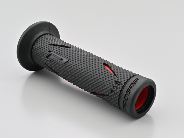 MotoGPライダーが実際に使用しているハードタイプハードなスロットルやクラッチ操作でも摩耗しにくいハード素材のアウターラバー採用。RAタイプはインナー側も少し硬度を上げることでハンドルとの密着性を高めています。スポーツタイプにおすすめです。・カラー:ブラック/レッド・材質:ハードゲル・エンド貫通・長さ:122mm・内径(左右):22/25mm※ハードGELの材質は溶剤に弱いため、エポキシ樹脂製の専用グリップボンドをご使用ください。デイトナ社 グリップ接着剤 PROGRIP耐震ゲルタイプ専用(93129)をおすすめします。