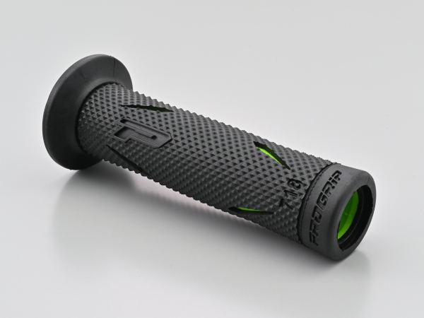 MotoGPライダーが実際に使用しているハードタイプハードなスロットルやクラッチ操作でも摩耗しにくいハード素材のアウターラバー採用。・カラー:ブラック/グリーン・材質:ハードゲル・エンド貫通・長さ:122mm・内径(左右):22/25mm※ハードGELの材質は溶剤に弱いため、エポキシ樹脂製の専用グリップボンドをご使用ください。デイトナ社 グリップ接着剤 PROGRIP耐震ゲルタイプ専用(93129)をおすすめします。