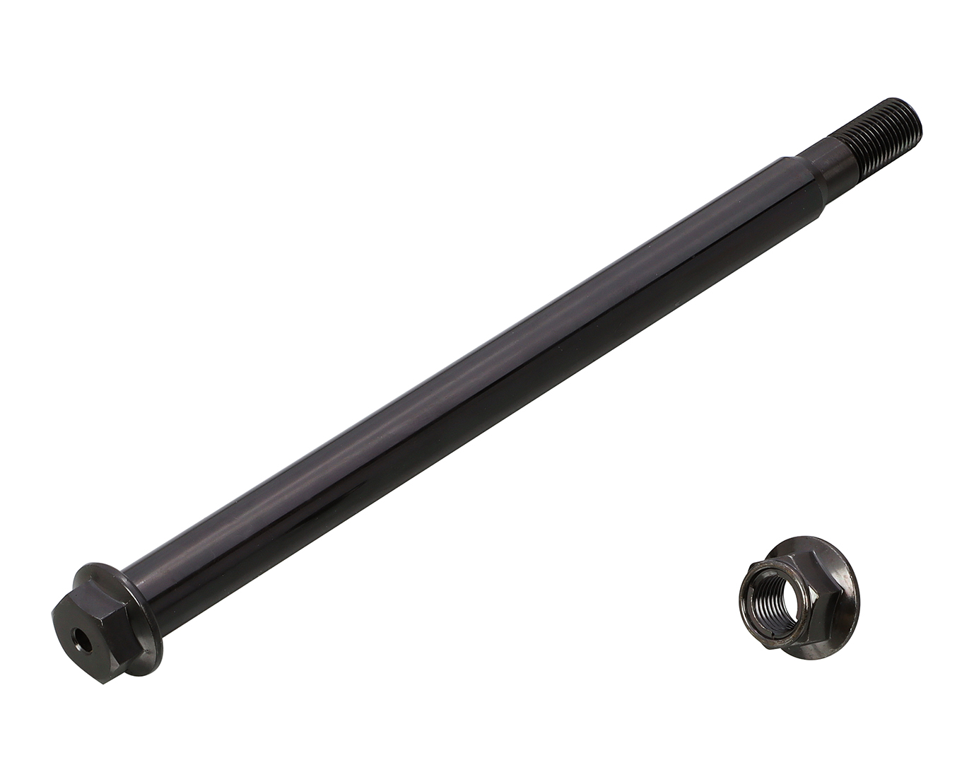 完全日本製で高品質!純正アクスルシャフトよりも約12%軽量化!!バネ下重量を軽減させる中空穴を空けた軽量アクスルシャフトです。・スチール製(クロモリ鋼)/ブラック仕上げ●下記の車両のリヤに適合クロスカブ110JA45全車種クロスカブ110A60全車種※スーパーカブ110(JA44/JA59)は使用不可・シャフト径:φ15・ネジ径:M12・中空穴径:φ5・シャフト長(首下長さ):217mm・シャフト単体重量:約270g(ノーマル重量305g)・適合純正品番:42301-K88-Y00