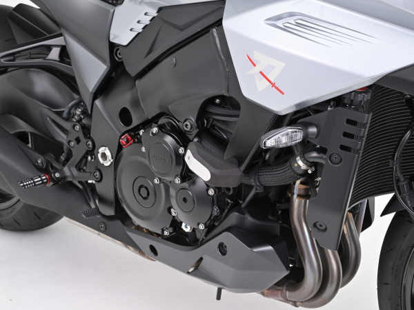 樹脂製パッドが転倒時のダメージを吸収し、マシンへのダメージを緩和。流線形パッドとアルミプレートの組み合わせで機能とドレスアップ効果を両立します。・スライダー本体:PA66GF15 / スペーサー:アルミ(ブラックアルマイト)/ ボルト:スチール※本商品は軽度の転倒時における、エンジンや車体へのダメージを軽減する目的の商品となります。転倒時のキズやカウル類の割れなどを保護するものではございません。また転倒時の状況によっては、未装着時よりダメージが大きくなる場合やダメージを軽減できない場合もございます。あらかじめご了承ください。※本商品の本体は、一定以上の衝撃を受けると、衝撃を緩和するために本体が破損(ボルト固定部周辺)するよう設計されております。破損した場合は新しいスライダーに交換してください。※当社パイプエンジンガードとの同時装着はできません。【SUZUKI】車種:GSX-S1000年式型式:2016(GSX-S1000AL6_GT79A)車種:GSX-S1000年式型式:2017(GSX-S1000AL7_GT79B)車種:GSX-S1000年式型式:2017(GSX-S1000ZAL7_GT79B)車種:GSX-S1000年式型式:2018(GSX-S1000YAL7_GT79B)車種:GSX-S1000年式型式:2019(GSX-S1000AL9_GT79B)車種:GSX-S1000年式型式:2019(GSX-S1000YAL9_GT79B)車種:GSX-S1000年式型式:2019(GSX-S1000ZAL9_GT79B)車種:GSX-S1000年式型式:2020(GSX-S1000AM0_GT79B)車種:GSX-S1000年式型式:2020(GSX-S1000ZAM0_GT79B)車種:KATANA年式型式:2019(GSX-S1000SM0)車種:KATANA年式型式:2020(GSX-S1000SRQM0_GT79B)車種:KATANA年式型式:2021(GSX-S1000SRQZM1_GT79B)車種:KATANA年式型式:2022(GSX-S1000SRQM2_EK1AA)