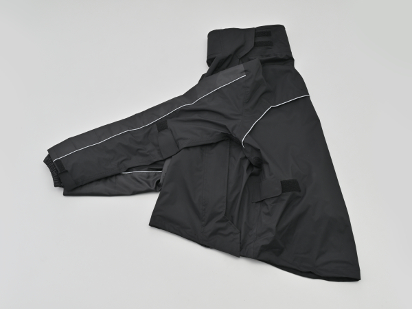 ライダーが濡れないことを最優先に考えた、バイク用 防水・透湿 高性能レインウェアジャケットは、動きやすいストレッチ生地を使用し、斜めに配置したフロントフラップがファスナーからの浸水を防止。首元には内側がクロロプレン素材の高い襟を採用し、袖口は二重袖とサムホール、裾は二重裾とドローコードで雨滴の侵入を防ぎます。背中のベンチレーションがムレを防ぎ、バタツキを防ぐ幅広の面ファスナーはグローブでも使いやすい設計です。パンツは、摩耗に強いPVCコート生地を使用し、裾はロングブーツでも履きやすい幅広の面ファスナー仕様。熱に強い綿生地のマフラーガードも装備しています。腕とひざには厚手の生地を使うことで雨滴による痛みを軽減。雨天時の視認性を高める反射パイピングも装備しました。収納袋は完全防水仕様で、小物バッグとしても利用可能です。■ジャケット【動きやすいストレッチ生地】快適性向上のためストレッチTPUコート生地を採用。耐水圧20,000mm、透湿度5,000mm。【斜めファスナーフラップで浸水を防ぐ】ファスナーフラップを斜めにしたことで雨滴が流れ落ち、ファスナーからの浸水を防ぐ。【腹部からの浸水を防ぐ】雨滴の溜まる腹部からファスナーをずらすことで、ファスナーからの浸水を防ぐ。■パンツ【PVCをコートした高耐久性生地】シートとの摩耗が激しい下半身はPVCコートの高耐久性生地を採用。耐水圧20,000mm・カラー:ブラック ・サイズ:2XL(身長180〜185 / バスト100〜108 / ウエスト87〜102 / 股下87(cm))・ジャケット:素材 - ポリエステル100%、TPUコート(裏地)/ 初期耐水圧 - 20000mm JIS L1092 B法 / 初期透湿度 - 5000mm JIS L1099 B-1法・パンツ:ポリエステル100%、PVCコート(裏地)/ 耐水圧 - 20000mm JIS L1092 B法※身長は目安であり、体型によりあてはまらない場合があります。 ※バスト、ウエストは当社独自の計測方法に基づく寸法となります。※バスト、ウエストは商品の下に着るウエアの上から計測ください。 ※実際の商品は個体差が生じる場合があります。